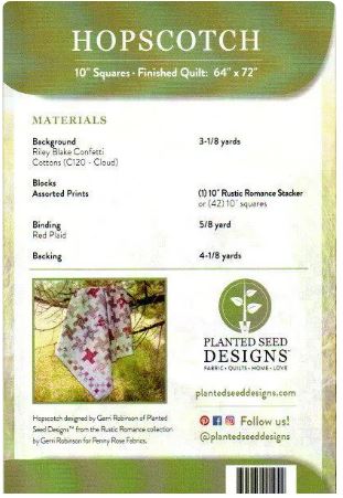 The Hopsctch pattern is a Layer Cake Friendly pattern. Finished quilt size is approximately 64"x72".